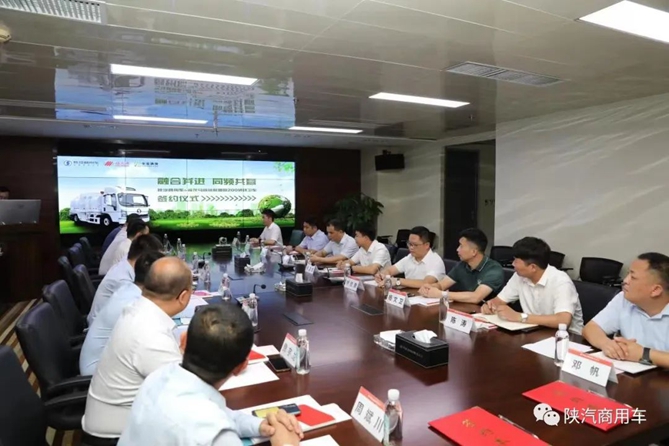 在嘉宾的见证下,陕汽商用车与福龙马进行了200辆环卫车签约。