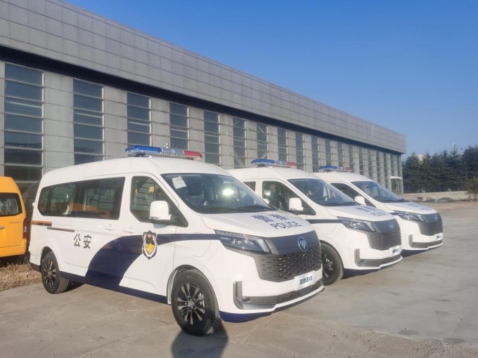 针对不同的执法场景需求,配套交付的警用车辆同样表现优异。其中,风景i9警车作为“中系新标杆”,搭载爱易科51.52kW·h电池,实现350km续航里程,轻松满足城市全天候执勤需要。其高强度笼式车身与前盘后盘制动系统、ABS+EBD智能防滑系统相结合,确保车辆在多种复杂环境下依然操控稳定,有力保障出勤安全。