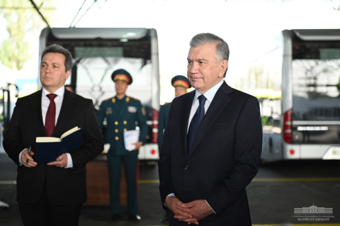 近日,乌兹别克斯坦总统沙夫卡特·米尔济约耶夫来到位于首都的塔什干公交公司,对7号公交车场进行了视察。随后,米尔济约耶夫总统还与市民共乘宇通客车,并分享了自己舒适的乘坐体验。