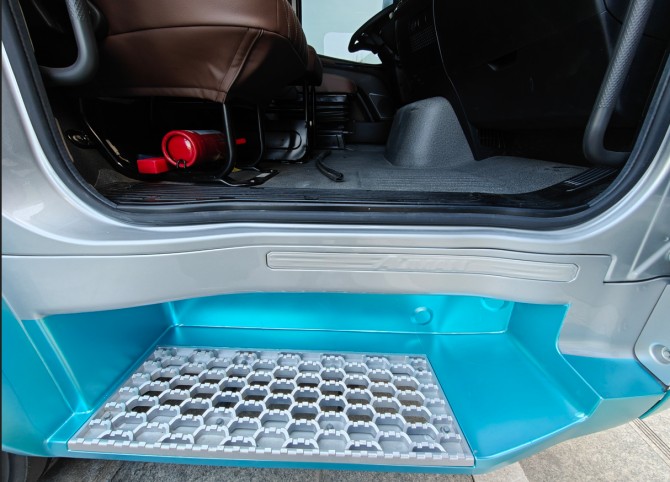 产品创新采用低入口设计,410mm 黄金高度踏步实现 “一步登车”,无需费力攀爬,将上下车作业强度降低 40%,彻底解决高频上下车的疲劳问题;2350mm 宽体驾驶室搭配平地板结构,实现 1930mm 站立空间,作业时可自由转身、取物,全舱无障碍通行,告别狭窄空间的操作束缚。同时,产品配备行业最大视野前挡风玻璃与 8.25 米行业最小转弯半径,让街巷作业更灵活、视野更开阔,有效规避视野受限导致的作业效率低、安全风险高等问题。